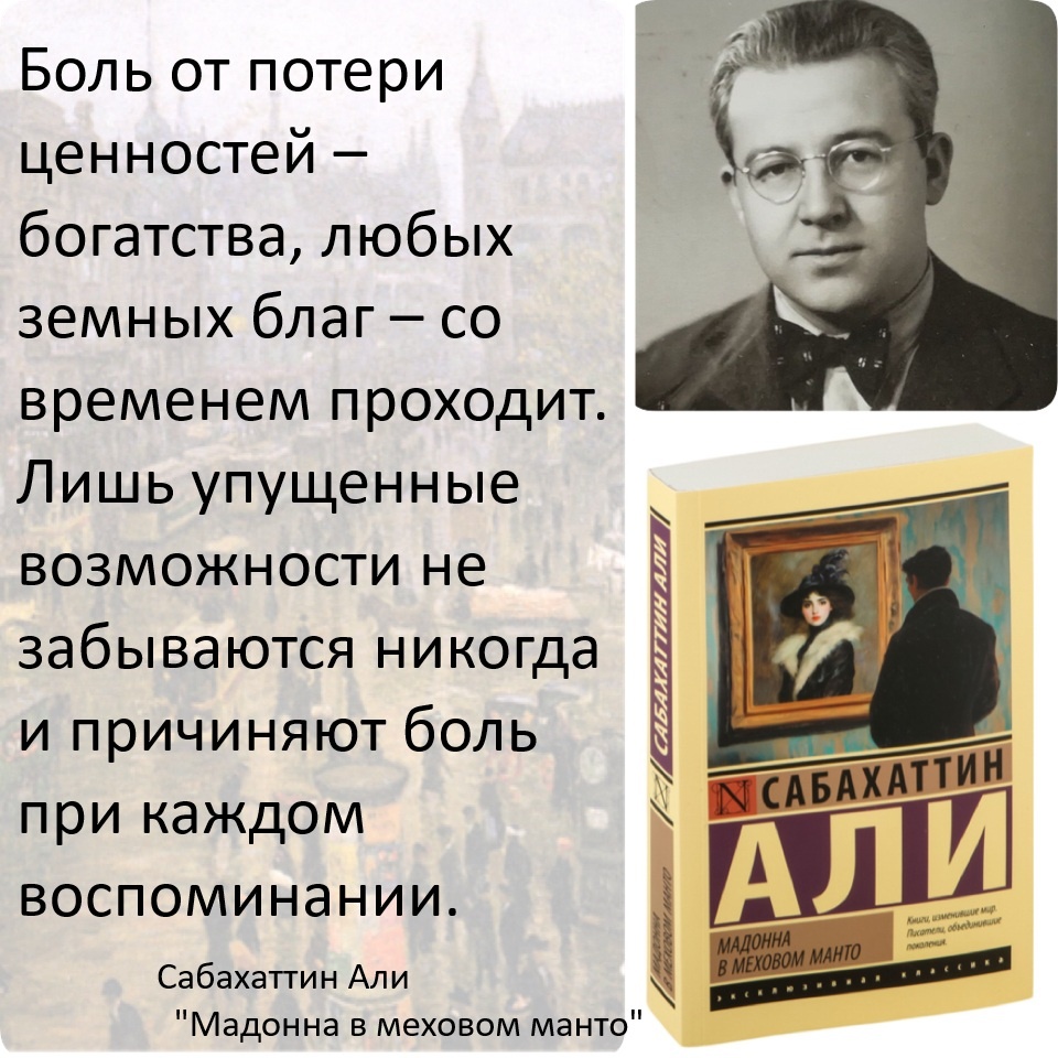 Такой и должна быть хорошая литература - не просто развлекать или имитировать лекцию по популярной психологии, но заставлять замереть, подумать, погрузиться в себя. Если у Ахерн все на поверхности, то Али более полувека шел к своему читателю, способному за любовной фабулой разглядеть достойный Достоевского анализ человеческой души. То, о чем рассказывает Али, не принадлежит определенному вероисповеданию, не цементируется рамками конкретной страны и уклада жизни. Его роман универсален и вневременен, как и положено классическому роману в широком смысле этого слова. И это здорово, что "Мадонна в меховом манто" наконец нашла своего читателя.