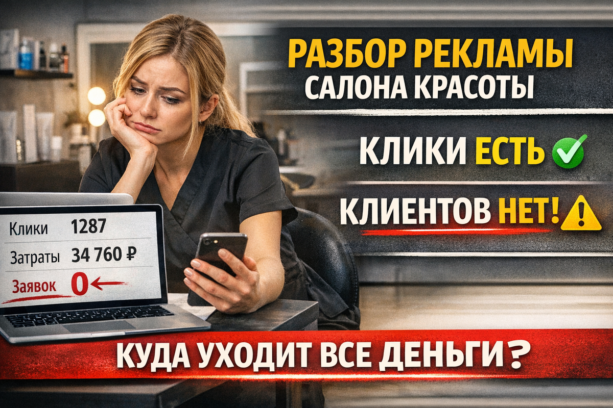Клики идут. Но записи почти нет. И владелец говорит: «Реклама не работает» Хотя проблема почти всегда не в рекламе. Давайте разберём реальный сценарий, который я вижу в 8 из 10 салонов. Салон запускает: — Яндекс Директ