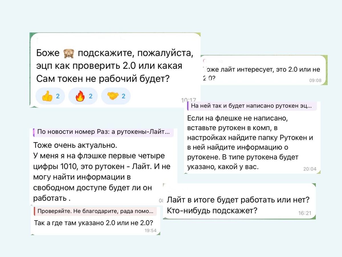 1️⃣ Рутокен Лайт Пользователям, применяющим Рутокен Лайт, беспокоиться не о чем. В налоговой службе пояснили, что данный носитель имеет сертификат ФСТЭК России. Его допускается эксплуатировать даже после истечения срока действия указанного сертификата. Главное условие — продолжение технической поддержки этого типа устройств со стороны компании-производителя. Таким образом, замена этих ключей не требуется. 2️⃣ Рутокен ЭЦП 2.0 Данные носители могут функционировать исключительно как пассивные хранилища ключей электронной подписи (средства защиты информации). И то только до момента прекращения их технической поддержки изготовителем. Как только производитель завершает сопровождение Рутокен ЭЦП 2.0, использовать его для хранения ключей квалифицированной электронной подписи становится невозможным. Поэтому данный носитель в любом случае придется менять, так как он не соответствует требованиям защиты информации. 💡Важно! КЭП руководителя или ИП, выданная ФНС: перенести с Рутокена 2.0 на Руток
