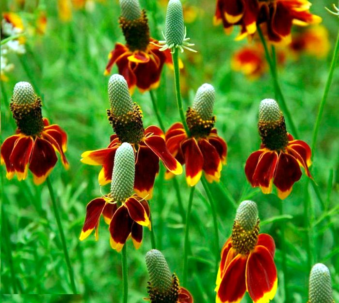 Ратибида: Солнечный Цветок Прерий, Который Оживит Ваш Сад Представьте себе цветок, который выглядит так, будто он только что сошел с картины, изображающей бескрайние американские прерии. Яркий, жизнерадостный, с необычной формой, которая сразу притягивает взгляд. Это и есть Ратибида – удивительное растение, которое принесет в ваш сад частичку дикой, но при этом очень элегантной природы. Что это за растение? Ратибида (лат. Ratibida) – это род многолетних, а иногда и однолетних травянистых растений из семейства Астровые (или Сложноцветные), к которому относятся и подсолнухи, и ромашки. Родом она из Северной Америки, где ее можно встретить на лугах, в степях и на открытых солнечных полянах. Именно поэтому она так хорошо приспособлена к солнцу и засухе. Как она выглядит? – Главная изюминка! Самая узнаваемая черта Ратибиды – это, конечно, ее цветки. Они очень необычные и сразу бросаются в глаза: Центральный конус (столбик): Это то, что делает Ратибиду такой особенной. Вместо плоской середин