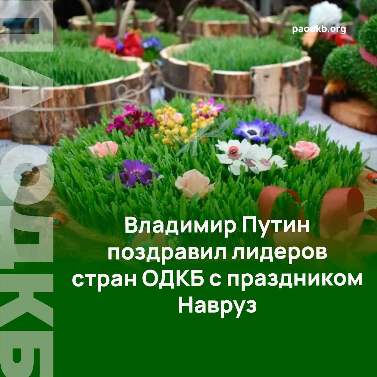телеграммы главам государств-участниц Организации по случаю наступления праздника весеннего равноденствия Навруз. 📃 Владимир Путин пожелал президентам Казахстана, Кыргызстана и Таджикистана, а также народам этих стран процветания и благополучия, а также отметил высокий уровень отношений с указанными государствами и выразил уверенность в том, что взаимовыгодные многоплановые связи с ними будут и впредь успешно развиваться. 🌸 Напомним, праздник Навруз в 2026 году является государственным выходным в большинстве стран, входящих в оборонный союз, и сопровождается масштабными культурными мероприятиями. 🔴 Сайт 📱 VK 📱 Fb 📱 X 📱 Instagram 📱 dzen