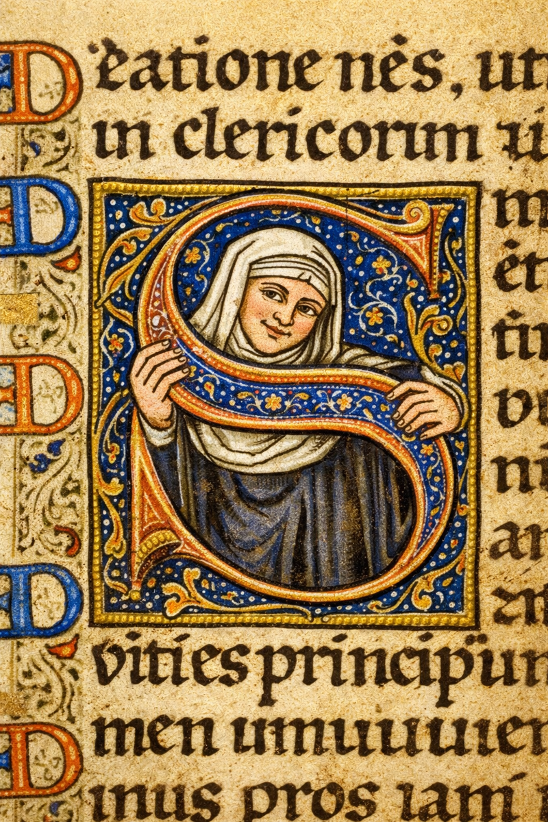 Это крошечный автопортрет — и в нём больше личности, чем в сотнях безымянных рукописей, переписанных такими же женщинами до и после неё.