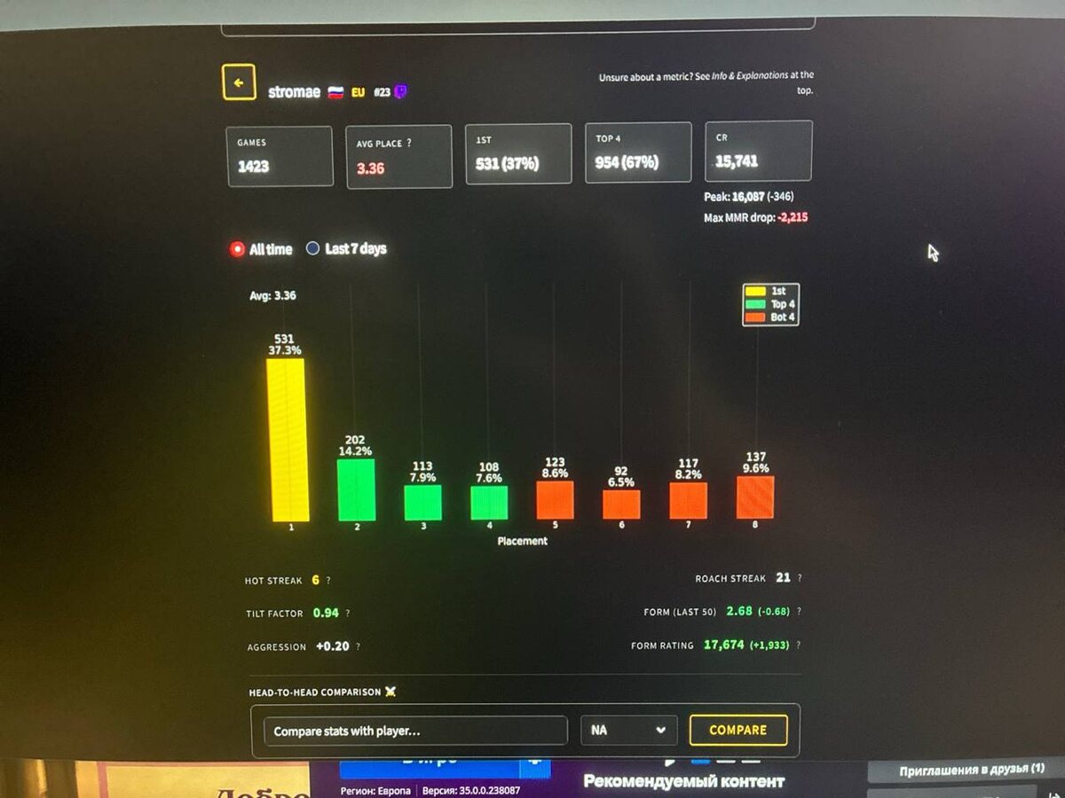 продолжаем следить за статой я стал агрессивнее играть у меня повысился тильт фактор и среднее место просело😢теперь по форме 17к