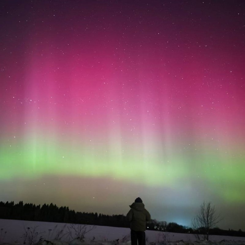 😍 Этой ночью жители Ярославской области наблюдали северное сияние. Особенно насыщенным оно было за чертой города. На небе можно было увидеть красивые переливы зеленого, розового и фиолетового цветов. Делитесь в комментариях своими фотографиями, если удалось запечатлеть природное явление⤵️ 📷 соцсети 💚 Мы в МАХ