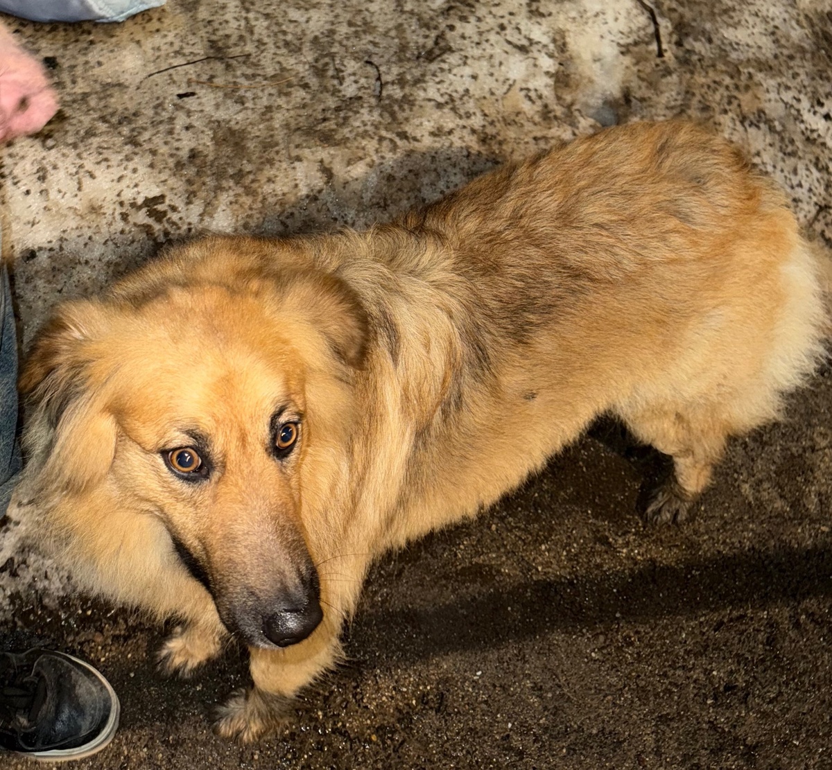 Вдоль обочины у поворота на ул.Советская бежало это создание. Клипса в ухе отсутствует, и выглядит как домашняя.