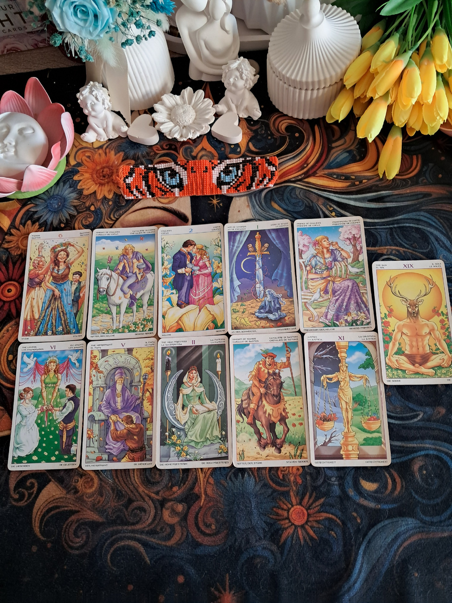 Вы сегодня смотрели на ситуацию (или на него) его глазами — об этом говорит сочетание Верховной Жрицы (ваша интуиция, попытка заглянуть вглубь) и Влюбленных с Иерофантом (зеркало отношений, попытка понять его систему ценностей).
