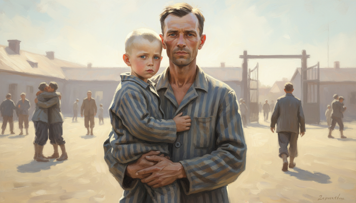 Как отец провёз сына через ворота концлагеря в заплечном мешке