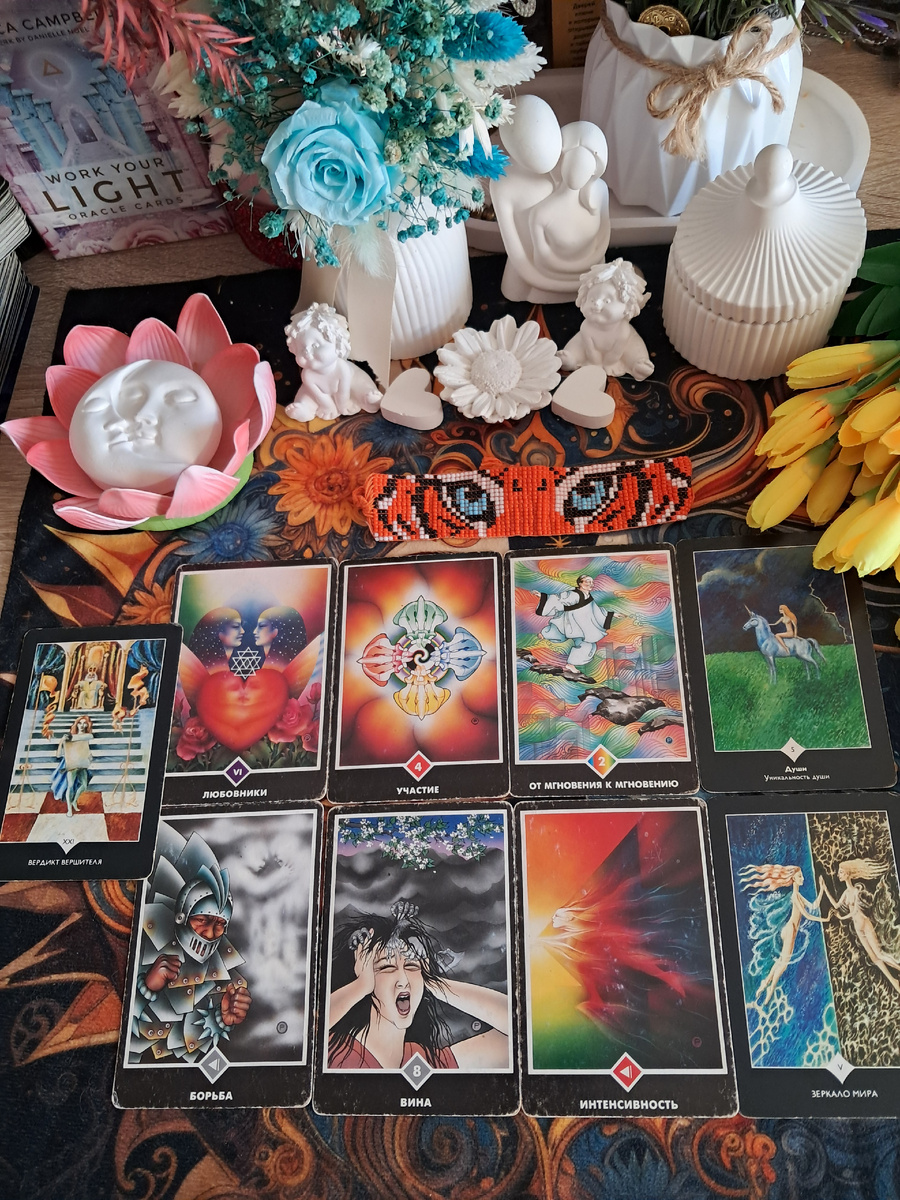 Хороший знак. Вы не просто «получаете» информацию извне, вы в нее вовлечены. Это говорит о том, что вы не отстраненный наблюдатель. Тонкий план для вас — это не абстрактная теория, а живая ткань. Вы умеете входить в поток событий. Однако карта предупреждает: иногда вы путаете чувствительность к энергии с необходимостью контролировать всё вокруг.