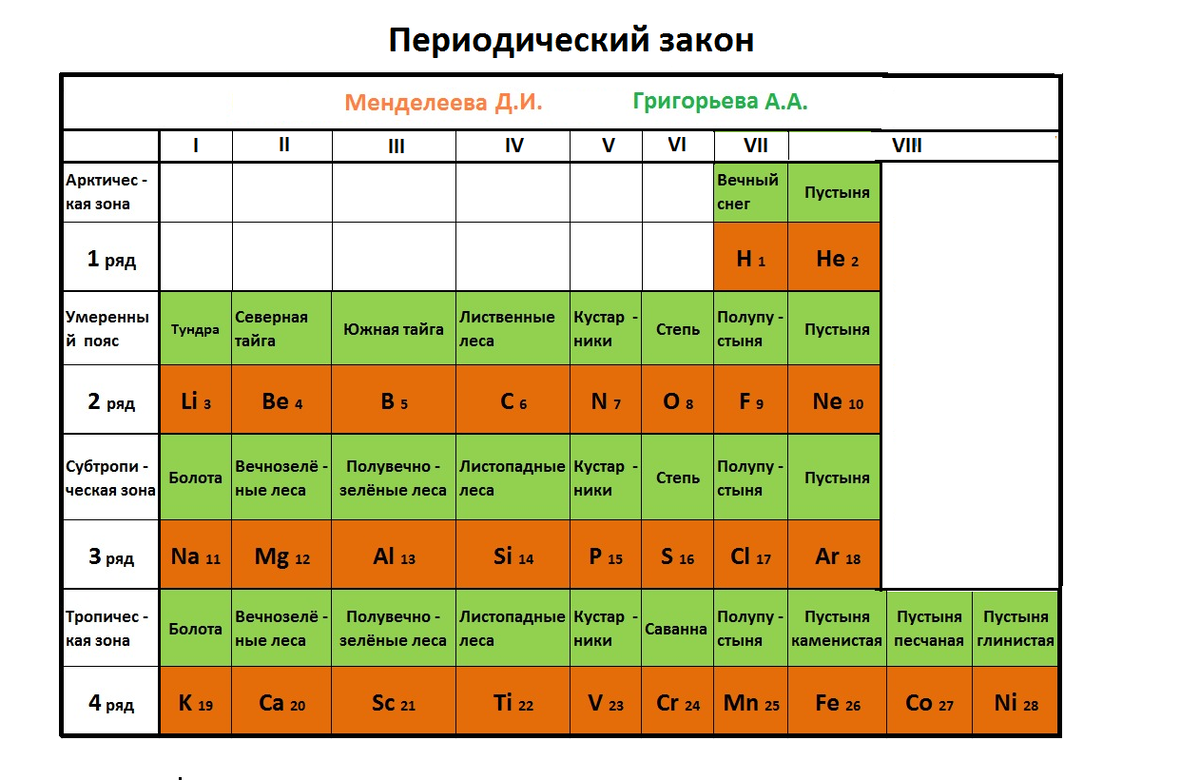 Периодический закон Д.И.Менделеева, А.А.Григорьева