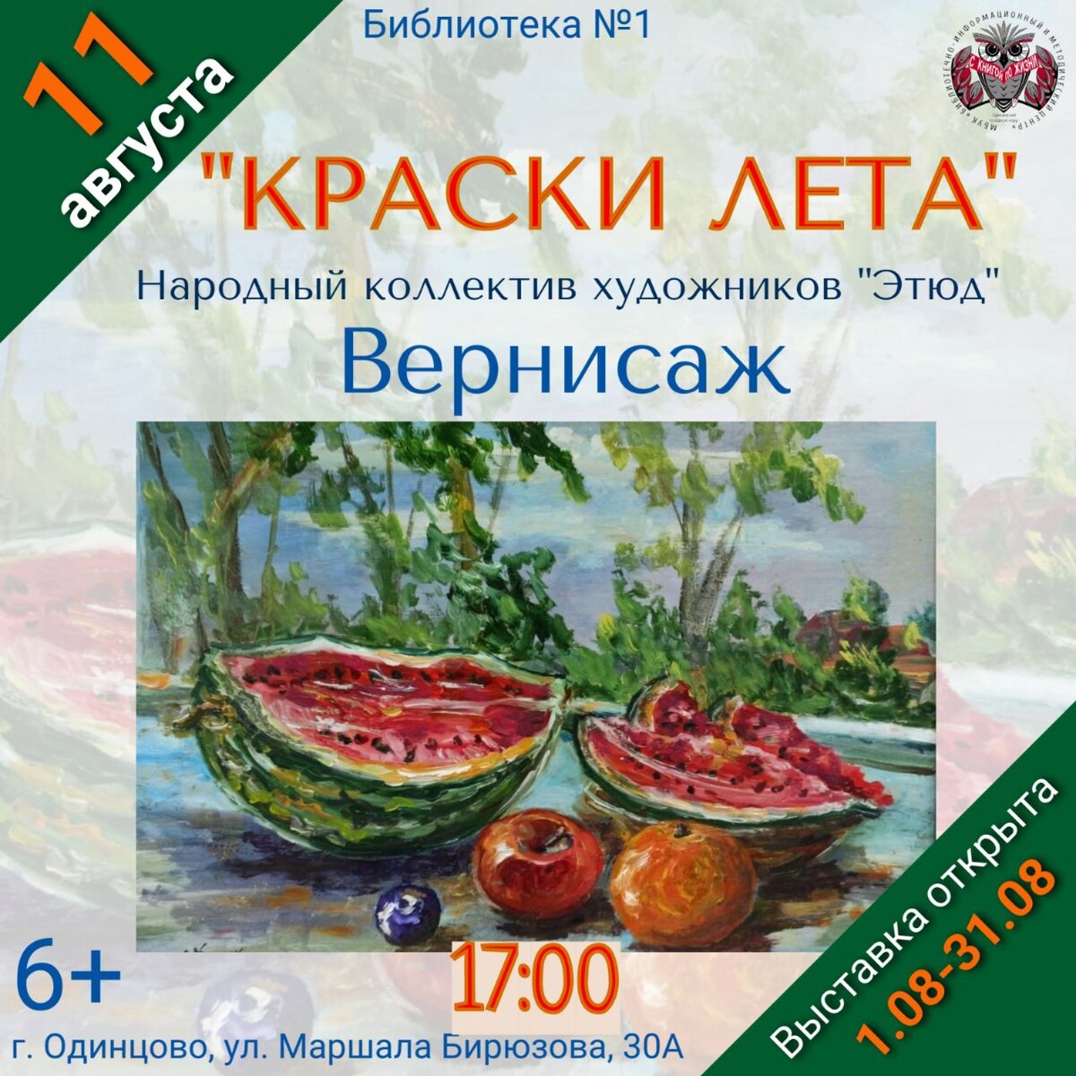 В первой Одинцовской библиотеке открыли выставку «Краски лета». Съёмочная группа ОТВ поговорила с художниками о картинах, сложных техниках и вдохновении.