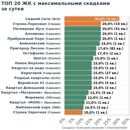 🟩 Честные скидки: 50 ЖК (581 кв.) 🟧 Маркетинг скидки: 29 ЖК (250 кв.) 💎 МАКСИМАЛЬНАЯ ЭКОНОМИЯ 🏆 Главстрой • Береговой ├🔻14.4M → 96.3M • 3-к 124м² ├🔻14.4M → 96.1M • 3-к 125м² └🔻13.5M → 90.2M • 3-к 118м² 🥈 Самолёт • Верейская 41 ├🔻9.1M → 60.5M • 4-к 126м² └🔻5.8M → 39.0M • 3-к 78м² 🥉 Эталон • Шагал └🔻5.1M → 31.8M • 2-к 69м² 4️⃣ Брусника • Квартал «МОНС» └🔻4.9M → 44.3M • 3-к 111м² 5️⃣ Брусника • Квартал «Метроном» ├🔻4.8M → 36.1M • 3-к 151м² └🔻4.1M → 31.1M • 3-к 128м² 🔑 САМЫЕ ДОСТУПНЫЕ 🏆 Гранель • Пехра ├🔻291к → 4.7M • Студия 24м²❗️ ├🔻291к → 4.7M • Студия 24м² └🔻303к → 4.8M • Студия 27м² 🥈 Самолёт • Пригород Лесное ├🔻144к → 4.8M • Студия 23м² ├🔻149к → 5.0M • Студия 23м² └🔻842к → 5.4M • Студия 22м² 🥉 Самолёт • Квартал Авиаторов └🔻79к → 5.3M • Студия 28м² 4️⃣ Самолёт • Пятницкие Луга ├🔻109к → 5.4M • Студия 22м² └🔻92к → 5.7M • Студия 22м²❗️ ❗️— лоту меньше месяца 👇 Полная статистика: 📲 В Telegram | 🌐 На MskMeter.ru