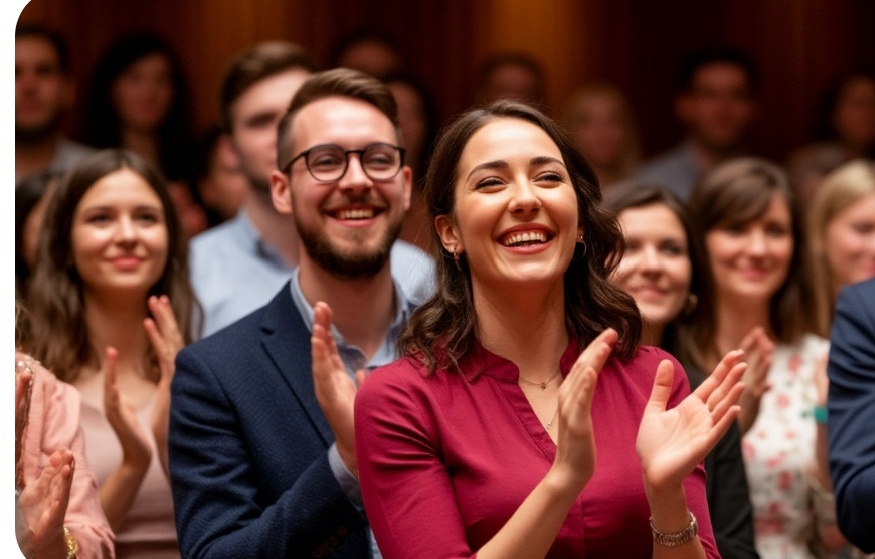 Один хлопок, второй. Потом ещё. Через секунду уже весь край стола — её студенты, коллеги — стоя аплодировали. Кто‑то сказал: «Браво, Анна Сергеевна».