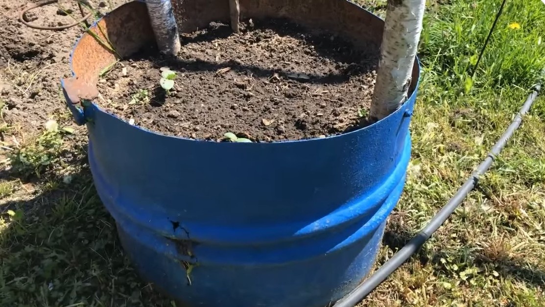 Тёплая грядка из бочки — удобная конструкция для выращивания теплолюбивых растений, таких как огурцы, на несколько недель раньше обычного. Она работает благодаря внутреннему подогреву от разложения органики. Бочка компактна, не занимает много места и позволяет получать урожай даже на сложных почвах. ### Подготовка бочки Для грядки подойдут бочки объёмом от 100 до 250 литров: металлические или пластиковые. Пластиковые больше подходят для жаркого климата, так как меньше нагреваются и не ржавеют. Однако металлические бочки стоят дешевле. В нижней части бочки нужно сделать несколько отверстий для вентиляции и отвода лишней влаги. ### Выбор места Бочку следует ставить в солнечном месте, защищённом от ветра. Идеально, если её будет ненадолго притенять в полуденные часы. Располагайте бочку так, чтобы к ней был доступ со всех сторон. ### Наполнение бочки Бочку наполняют слоями, как слоёный пирог: 1. **Дренаж.** На дно кладут крупные растительные остатки, которые долго разлагаются: ветки, опилк