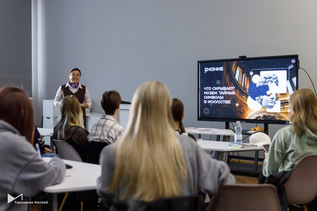 Нижегородский государственный архитектурно-строительный университет (ННГАСУ) начал сотрудничество с крупнейшей просветительской организацией страны — Российским обществом «Знание». Первым совместным событием стала открытая лекция, посвященная скрытым смыслам в мире искусства. В ННГАСУ выступила кандидат философских наук, доцент кафедры истории, философии, педагогики и психологии Валентина Семёновна Лапшина с темой: «Что скрывают музеи: тайные символы в искусстве». Студенты совершили увлекательное путешествие в историю музейного дела — от эллинистического храма муз (Мусейона III века до н.э. в Александрии) до современных интерактивных пространств. Слушатели узнали, как частные коллекции знати превращались в музеи мирового уровня, и какие форматы существуют сегодня: музеи под открытым небом, музеи-дороги и даже персональные музеи. Особый интерес вызвал рассказ о том, что стать экспонатом может любая вещь, хранящая память или уникальную историю. Студенты поделились историями о своих семей