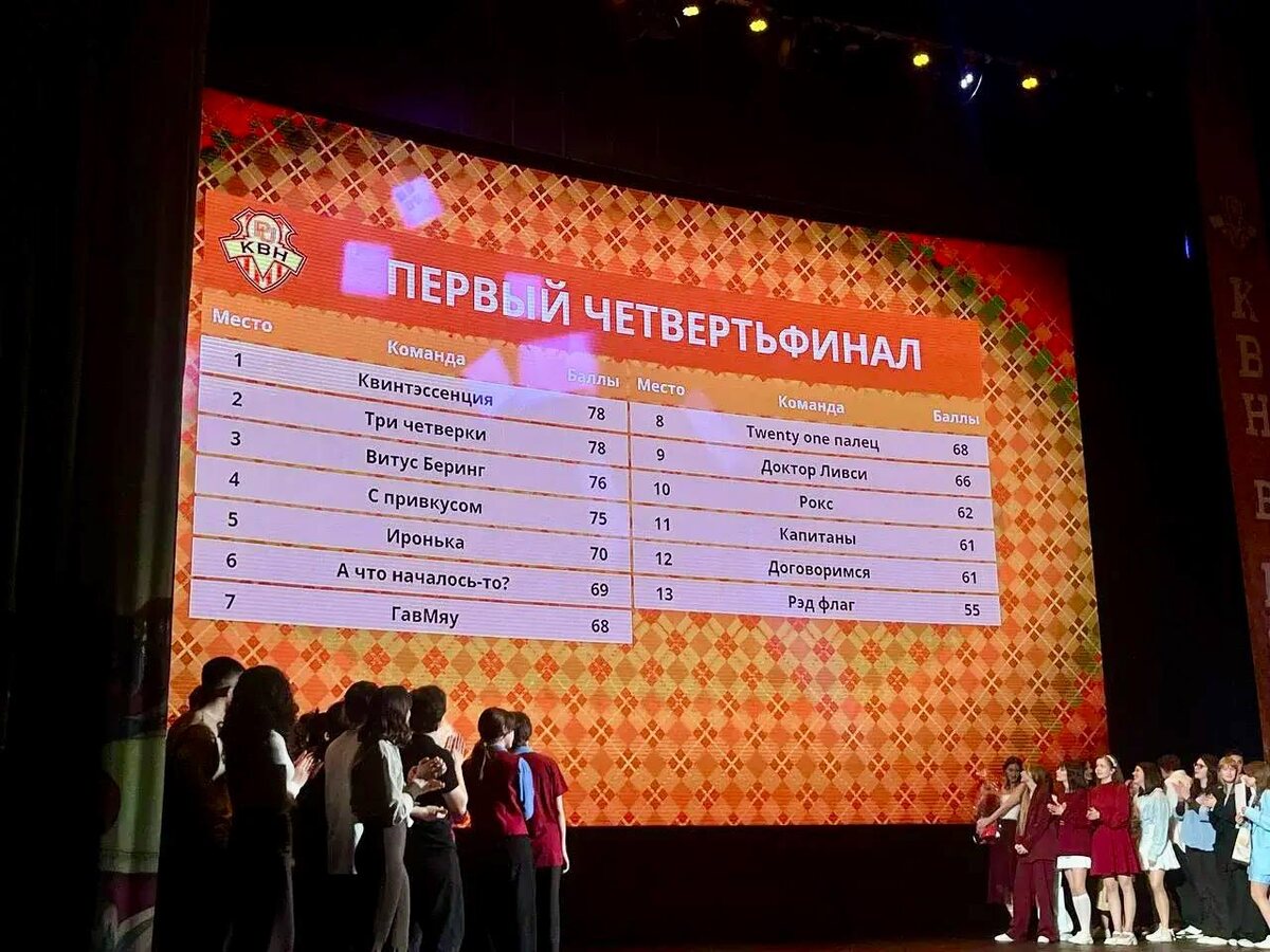 👏 💥 Вчера наша юмористы из команды «Три четверки» блестяще сыграли в 1/4 Плехановской лиги КВН! 🧑🧑🧒🧒 Из 13 команд вместе с нашими ребятами в полуфинал прошли 5 команд — в том числе участники из телевизионной Премьер-лиги КВН и телевизионной Первой лиги КВН: • 1-2. «Три четверки» (ГБОУ Школа № 444) —78 баллов; • 1-2. «Квинтэссенция» (РЭУ им. Г.В. Плеханова) — 78 баллов; • 3. Витус Беринг» (Петропавловск-Камчатский) — 76 баллов; • 4. «С привкусом» (РЭУ им. Г.В. Плеханова) — 75 баллов; • 5. «Иронька (РЭУ им. Г.В. Плеханова) — 70 баллов. 🔥 Отдельную номинацию «Лучший актер» за ответы в импровизационном конкурсе завоевал Рашид из 9-го «В» класса! 💫 Поздравляем команду с прекрасным результатом и желаем дальнейших успехов на сцене КВН! 💢 Дорогие родители, ученики и учителя, напоминаем вам, что 24 марта в 18:00 команда «Три четвёрки» сыграет в финале Московской Юниор-лиги КВН в ДТДиМ им. А.П. Гайдара по адресу ул. Шкулева 2с1, м. Волжская. 🎟️ Успейте забронировать билет по