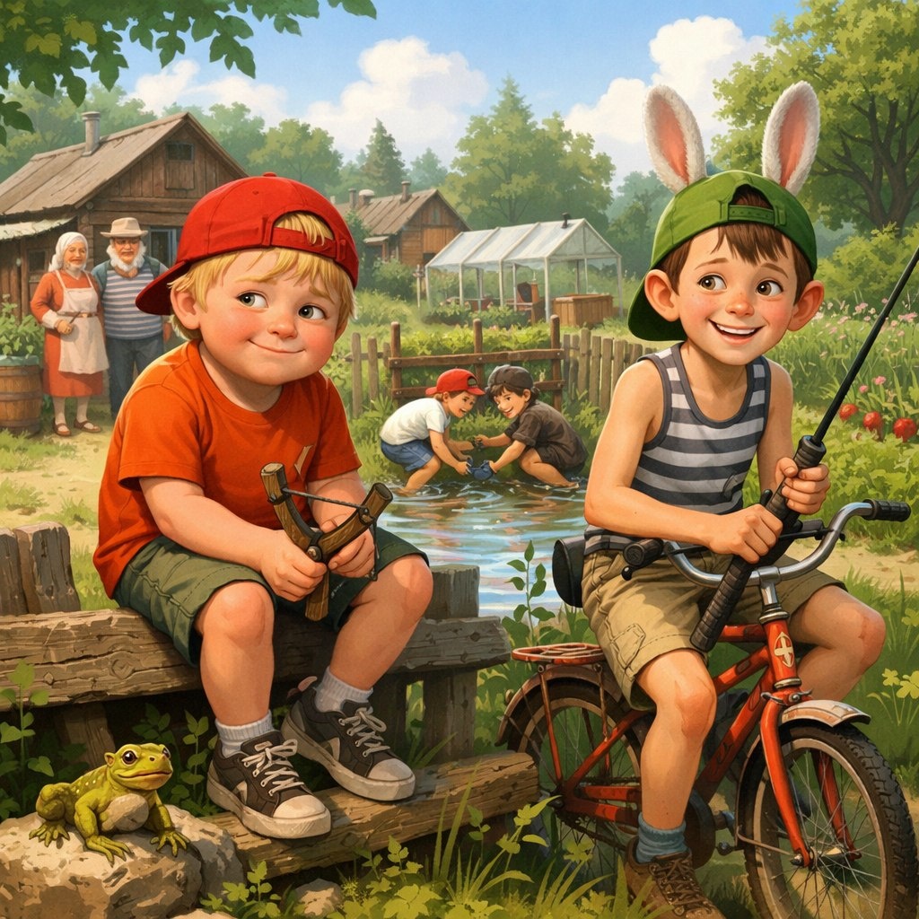 И рос этот Колобок в целом то и не плохо - мама и папа есть, да вот они больше на бабушку с дедушкой похожи. Разница в возрасте была слишком велика и чувствовалась разница поколений. Они советской люди закалки старались вырастить сына по законам того времени, вспоминая о былых временах. Сначала конечно Коля был совсем маленький и ничего особо не понимал, но с возрастом, когда у него начали появляться друзья, он увидел, какие же у них молодые родители, а его больше были похожи на бабушку с дедушкой. Он начал стесняться этого, избегать вопросов друзей о его родителях. В целом конечно тема не новая, но в совокупности все вышеописанные обстоятельства закладывали ту самую личность Коли Бокова и в будущем обьясняли его желание сбежать...от родителей и от ответственности. Конечно, как и у многих, у его родителей была дача - 6 соток в СНТ, где был старенький домик, пара теплиц, сплошные грядки да кусты и летний водопровод. И естественно с начала весны и до глубокой осени родители возили его туда, чтобы растить там все дары природы, наслаждаться летними днями, ходить на пруд и за грибами и просто проводить как и все дети лето беззаботно. Там собственно Колобок и познакомился с Денисом Зайцевым, которому даже и не надо было придумывать никакое прозвище, потому что оно само собой напрашивалось- заяц. И что характерно, Заяц - это не просто прозвище по его фамилии, а скорее по состоянию его души и тела. Это был маленький, худощавый парнишка, который слыл невероятным трусом. И вот надо же было такому случиться, что Колобок встретил именно Зайца на своём пути и сдружился с ним очень сильно. Всё лето они гоняли на великах, купались в пруду, ловили рыбу и лазили по чужим огородам.