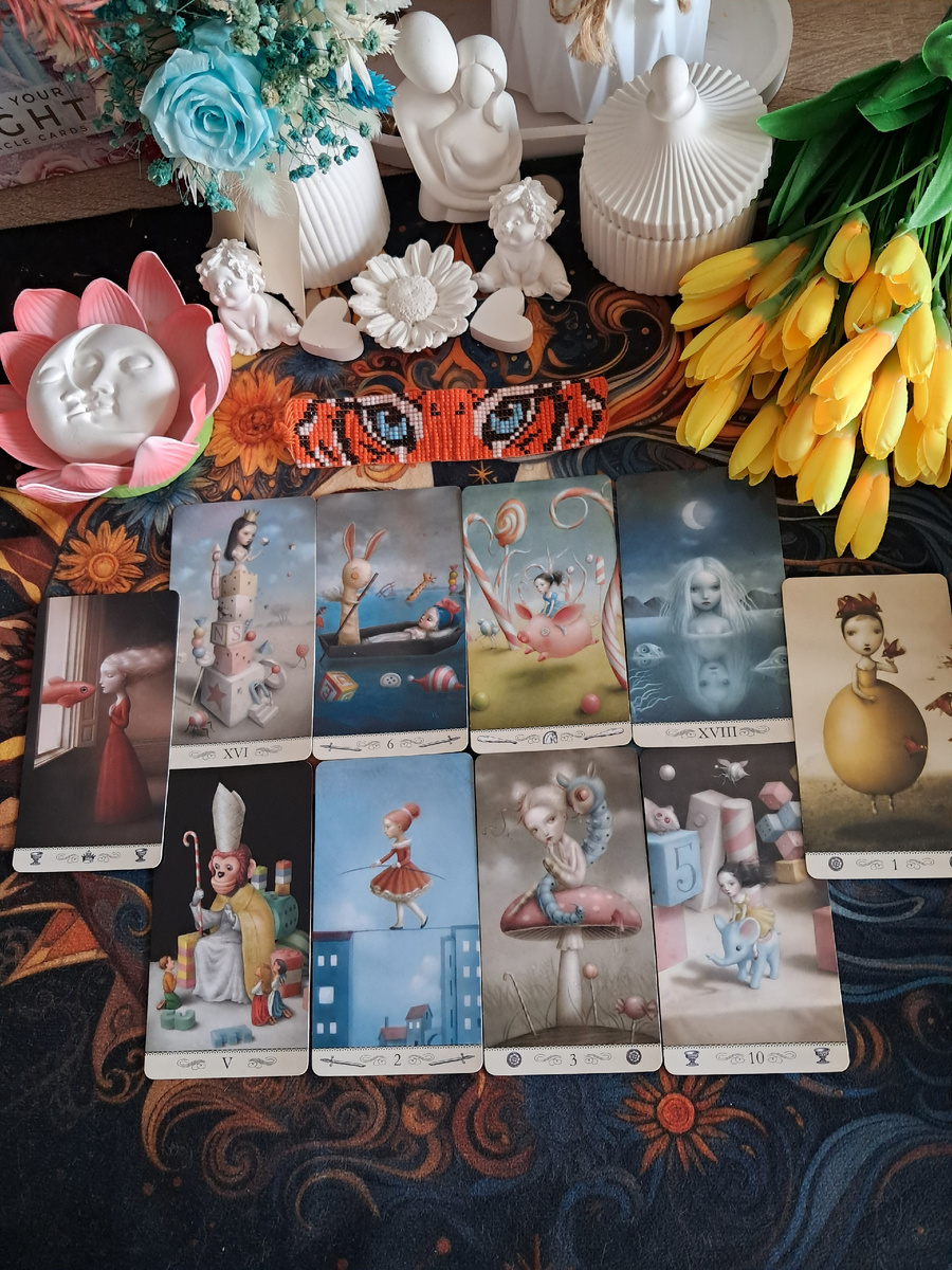 Вывод: Его жизнь — это посткризисное состояние, где он переживает крах (Башня), дистанцируется (6 Мечей), находится в замешательстве (Луна) и защищается молчанием (2 Мечей).