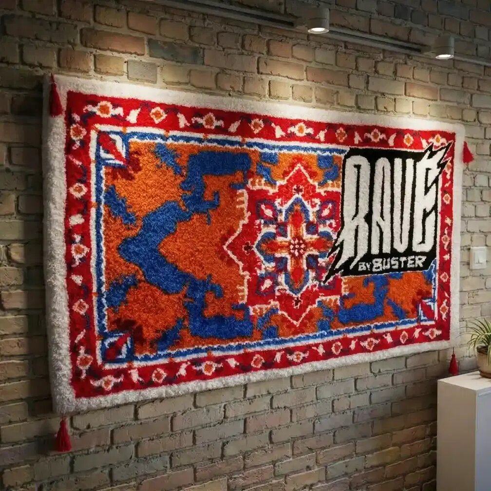 Этот тафтинговый ковер — пример того, как традиционный орнамент может заиграть по-новому в современном авторском изделии. В основе макета лежит узнаваемый советский узор, вдохновленный классическими коврами, которые многие помнят из интерьеров прошлого. Яркая красно-синяя рамка, геометрический орнамент и насыщенный центральный элемент создают ощущение ностальгии и визуальной плотности, характерной для винтажных ковров. Перед началом тафтинга макет ковра переносится на тканевую основу. Разметка выполняется вручную по заранее подготовленному шаблону, чтобы сохранить пропорции орнамента и точное расположение логотипа. На этом этапе важно аккуратно перенести все линии и элементы рисунка — от рамки до центрального узора, поскольку именно по этой разметке в дальнейшем будет выполняться пробивка ворса. Перед основной работой выполняется тестовая забивка ворса 🧵. Этот этап обычно занимает целый день ⏱️: подбирается оптимальная толщина линий, проверяется плотность ворса и читаемость деталей о