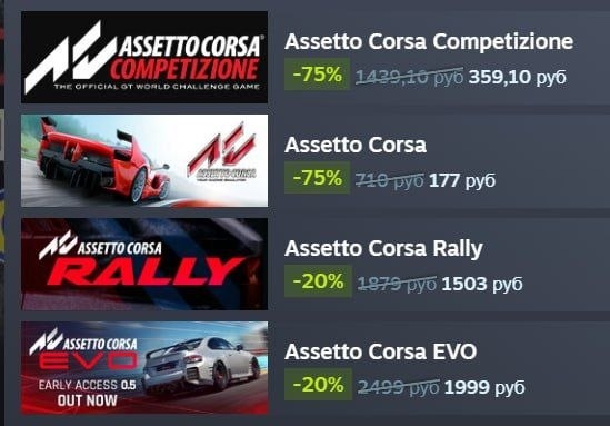 🛒 Распродажа в стим! Скидки на все игры Assetto Corsa и на все дополнения