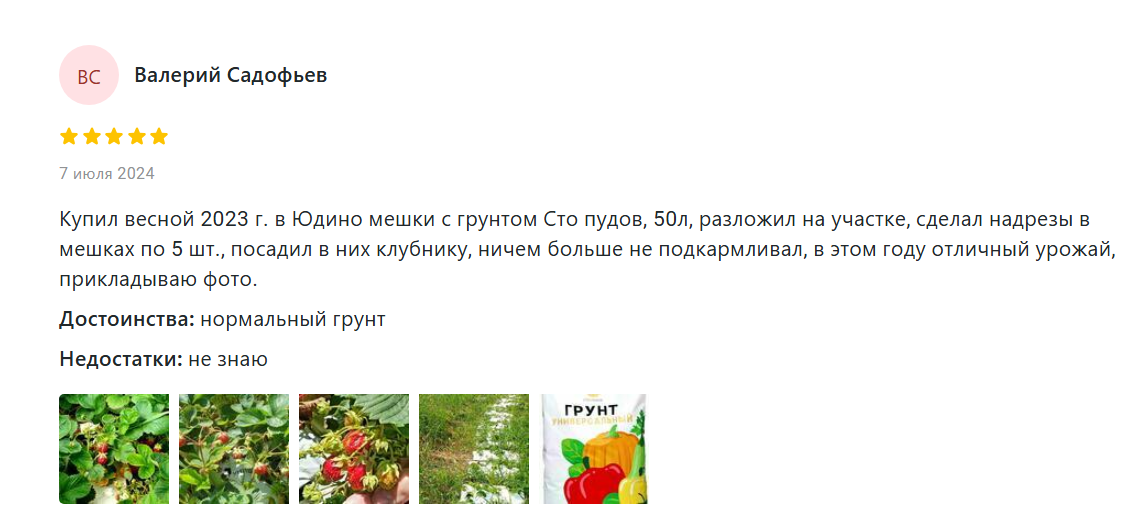 Не нужно копать грядки, косить траву и облагораживать участок. Просто разложи мешки с грунтом. Думаете, это шутка? Я сама бы в такое не поверила. Искала в интернете нормальный грунт и нашла вот такой отзыв на сайте Леман про. Этот Валера, судя по приложенным фото вообще с ухаживанием участка не заморачивается: не косит, не полит, грядок не копает и не формирует. Он реально разложил мешки с грунтом, сделал надрезы и на следующий год снимал урожай ягод. Представляете, оказывается так можно было делать? Не покупать косу, лопату, не формировать грядки и не тратить силы на прополку? Хотя, все таки наверно, траву возле мешков выдергивает?