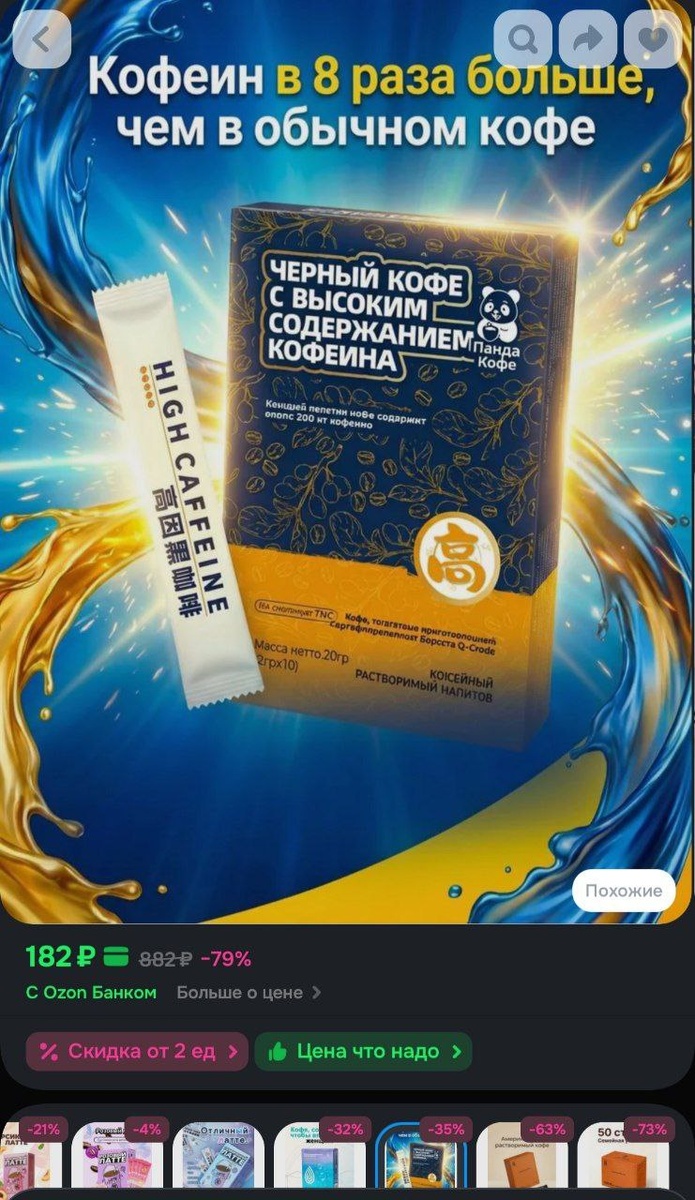 растворимый кофе, 2г x10 саше, кофе для бодрости за 182₽ + скидка от 2 шт