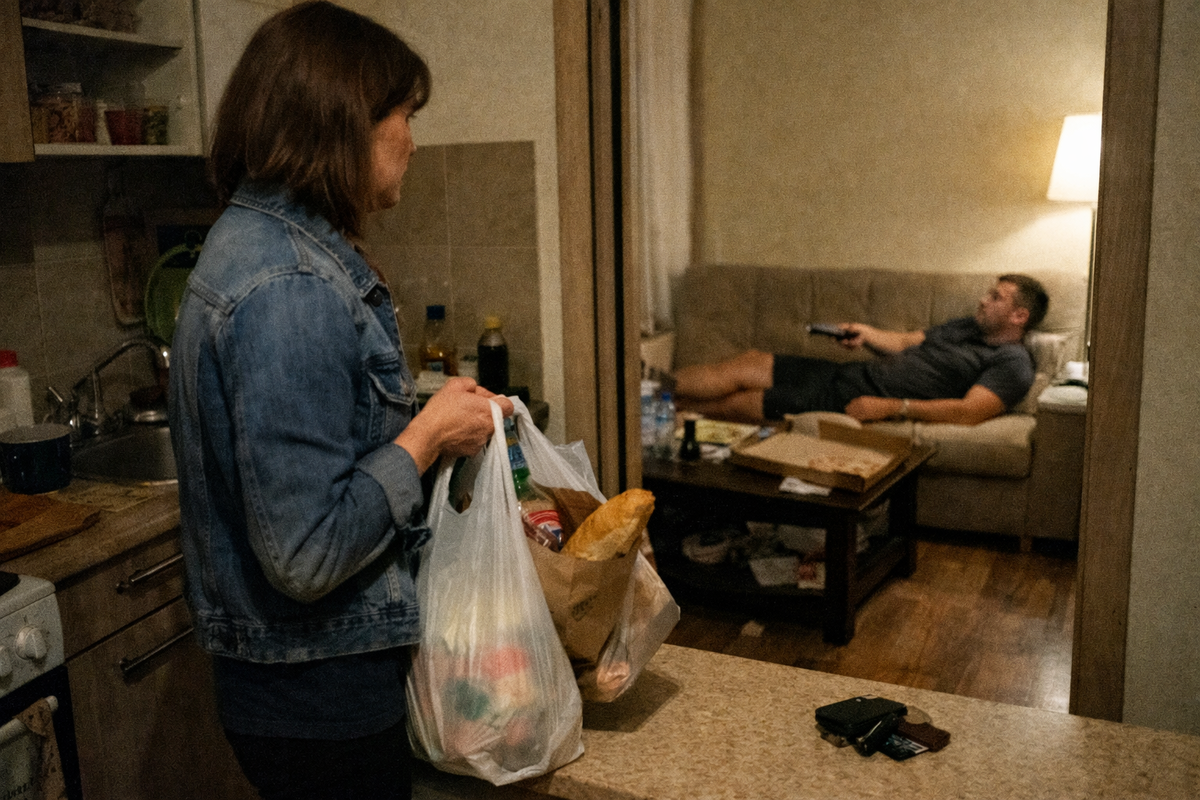 Она стояла у раковины, вода уже остыла, а она всё тёрла одну тарелку. Не потому что грязная — просто зависла. Из комнаты — телевизор на всю. Смех, крики, какой-то конкурс. — Мусор вынесешь? — крикнула она. — Ща-а… — протянул он. Она даже не обернулась. Только посмотрела на пакет у двери. Уже понятно — не вынесет. Вытерла руки, постояла секунду и всё-таки пошла в комнату. Он лежал, как и был. Пульт в руке, рядом пустая коробка из-под пиццы — вчера заказывали. Крошки на диване, соус на столе подсох. — Ты мусор вынесешь? — Да вынесу, ты чего… Я же не просто лежу. — А что ты делаешь? Он на секунду повернулся: — Отдыхаю. Я вообще-то тоже работаю. Она ничего не ответила. Развернулась и ушла. Когда они съехались, всё было не так заметно. Он правда как будто не умел половину вещей. — Я в этом ноль, — говорил он спокойно. — Ты лучше. И она делала. Потому что быстрее. Потому что проще не объяснять по десять раз. Иногда она сама его отстраняла: — Ладно, отойди, ты сейчас опять всё перепутаешь. Он