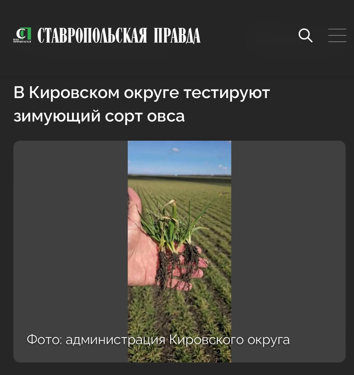 В фермерском хозяйстве Кировского округа стартовали сортовые испытания зимующего овса сорта «Восток». Цель эксперимента — оценить, насколько культура устойчива к суровым зимним условиям, а также изучить её адаптационные и продуктивные качества для последующего широкого внедрения в агротехнику региона. Первые результаты обнадеживают: посевы продемонстрировали высокую жизнеспособность даже при длительных отрицательных температурах. Специалисты рассматривают зимующий овес как перспективную высокоурожайную культуру — в том числе благодаря его устойчивости к вредителям. Развитие отечественной селекции — один из приоритетов для местных аграриев: как отметили в краевом минсельхозе, уже сейчас при севе озимых зерновых в крае на 100 % используются семена отечественной селекции. Глава Кировского округа Николай Новопашин подчеркнул значимость проводимой работы: «Сортовые испытания — серьёзная и важная работа, направленная на развитие АПК округа и Ставрополья в целом». Инициатива соответствуе