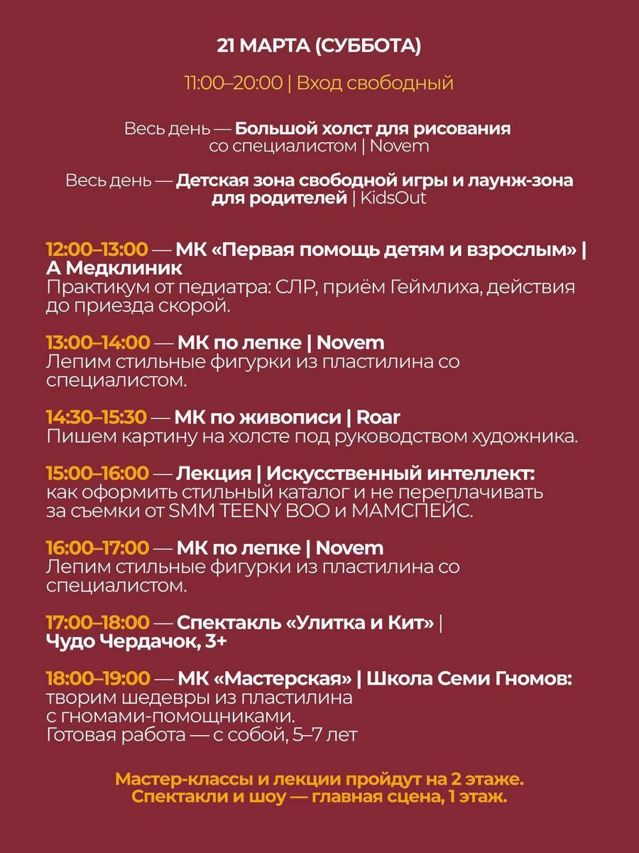 У них очень прикольная программа. Я честно не знаю, как успеть, но очень постараюсь заехать. Хочется и на новинки брендов посмотреть, и Алёну на мастер-класс сводить.