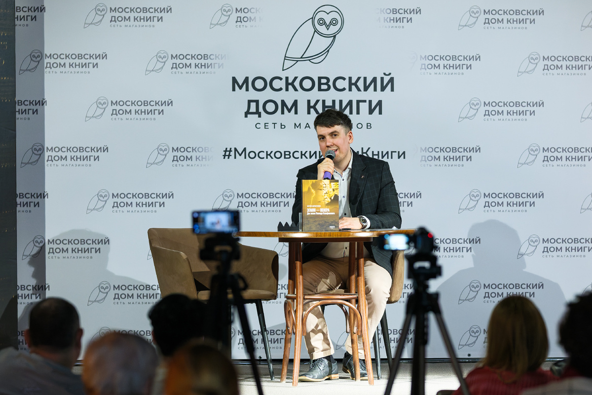 Автору задали напоследок вопрос из зала: "Кто он такой?" И Сергей рассказал, что он научный журналист, окончил Московский университет, кандидат филологических наук. Он брал интервью у Леонида Васильевича, и ещё тогда заинтересовался этой личностью, но уже после смерти Ксанфомалити в процессе работы над книгой он понял, что они родственные души.