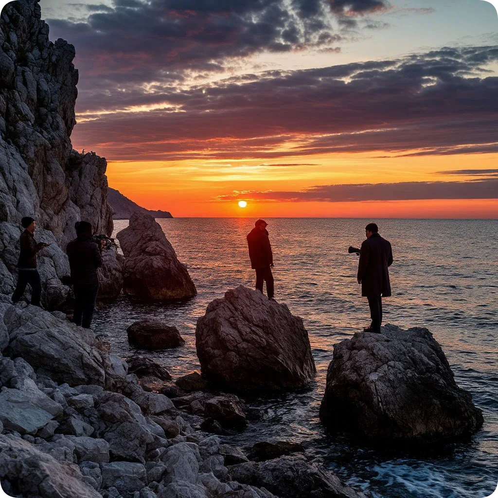 Дикий пляж курортников-москвичей снимали на диком пляже — возле поселка Новый Свет. Сегодня на этом месте пляжа уже нет, зато есть Новосветская набережная. Также сохранился «Камень Сундукова». Что интересно, во время съемок группа жила во дворце князя Голицына, на территории завода шампанских вин в Новом Свете (что весьма поднимало настроение всем участникам процесса). «Приключения Буратино»