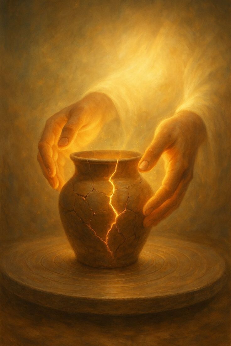 Наши трещины — это следы грехов. А золото в них — не сам грех, а пот и кровь борьбы с ним. Мы пытаемся выглядеть «целыми» перед Богом, а сам Бог в это время занимается кинцуги. Он собирает наши осколки, чтобы создать из них что-то вечное.✨