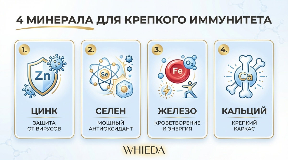 Взрослая жизнь диктует свои суровые правила: дедлайны, стрессы, нехватка сна и перекусы на бегу. В таком ритме наш организм быстро истончает свои запасы, и первая система, которая дает сбой — иммунная. Мы начинаем цеплять каждый сезонный вирус, чувствуем разбитость по утрам и теряем былую продуктивность. Разбираясь в том, как повысить иммунитет, взрослому человеку со всех сторон советуют просто пить витамин С и больше спать. Однако современная нутрициология доказывает: корень проблемы часто кроется не в нехватке витаминов, а в глубоком дефиците базовых минералов и микроэлементов. С возрастом усвоение питательных веществ из пищи заметно снижается. Даже если вы питаетесь сбалансированно, стресс и плохая экология буквально «выжигают» ценные минералы. Согласно масштабным исследованиям, опубликованным в авторитетной базе данных Национальной медицинской библиотеки США (PubMed), дефицит таких микроэлементов, как цинк и селен, критически ослабляет клеточный иммунный ответ и повышает восприимчи