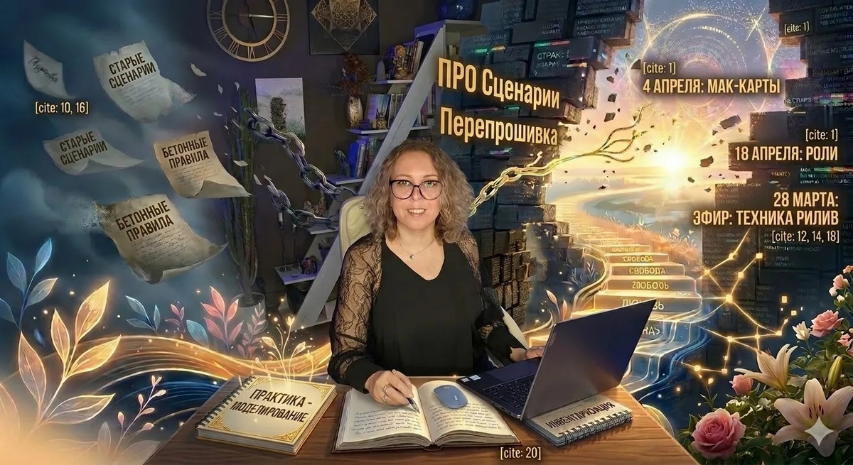 Девочки, моя программа "ПРО Сценарии: Перепрошивка" - это живой процесс. Я обещала вам максимальное погружение, и сегодня я выхожу к вам с новостями о наших онлайн-встречах.