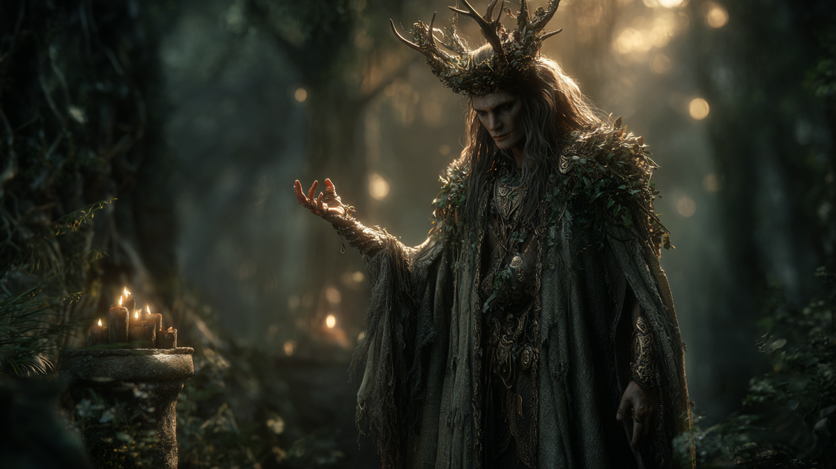 Король Дуба, владыка Зеленого Леса и золотой близнец растущей половины года, воплощает невинность, рост и жизненную мощь мира, который идет вширь и ввысь. Король Падуба - владыка Зимнего Леса и сумеречный близнец убывающей половины года. Он означает мудрость возраста и зрелость сезона. Вместе эти два бога отражают круг природы, бессмертный танец времен года. Они - боги роста, жертвы и возрождения, и эти темы звучат во множестве культурных пантеонов.