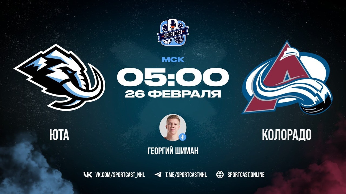 🏒 Юта Маммот против Колорадо Эвеланш 🏒 (начало в 05:00 по московскому времени).