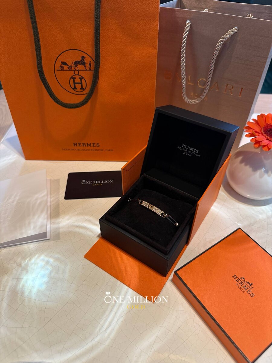 🛍️ Эта роскошная модель выполнена из розового золота 750 пробы и украшена бриллиантами, создающими деликатное, благородное сияние 💎 Дизайн вдохновлён культовой сумкой Kelly – узнаваемый замок и геометричные звенья создают изящное и современное украшение с характером 👜 Браслет, который идеально подчёркивает запястье и добавляет образу утончённой роскоши ✨