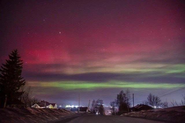 Жители нескольких регионов России наблюдали северное сияние этой ночью