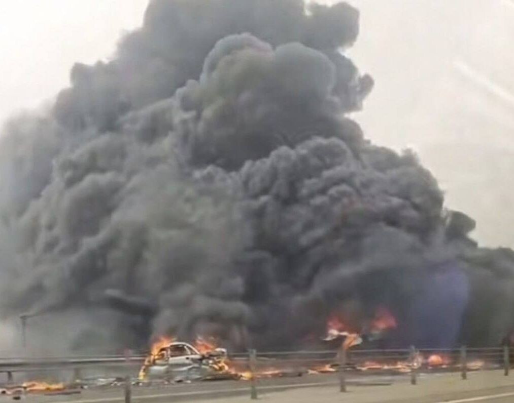 Горят автомобили после аварии с бензовозом на трассе под Таганрогом