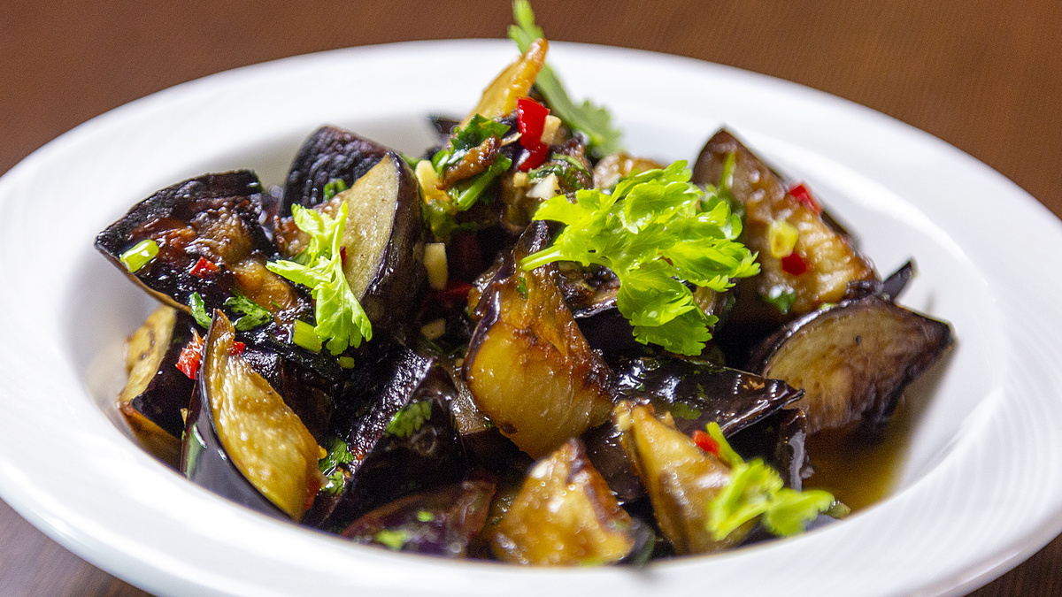 Ингредиенты: Приготовление: Баклажаны нарезать и обжарить, затем убрать лишний жир. Смешать чили, кинзу, чеснок, масло, соевый соус и уксус. Соединить с баклажанами, перемешать. Подать с зеленью (по желанию — кунжут). Подписаться в MAX https://max.ru/chefvasiliyemelyanenko