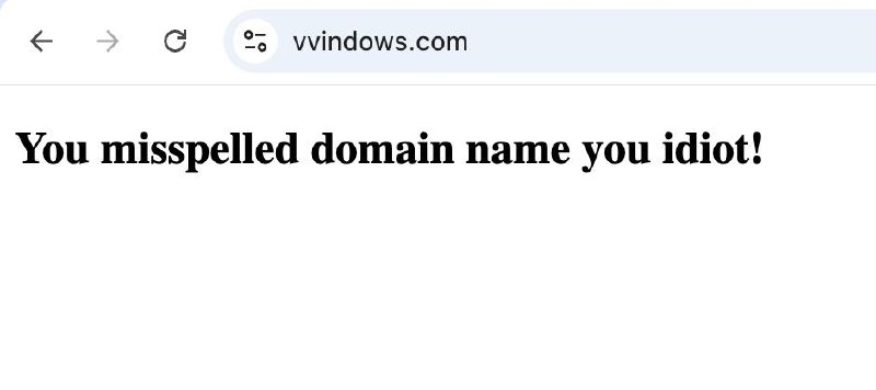 Кричим: некий энтузиаст приобрёл домен vvindows.cоm, и на сайте висит всего одна фраза: