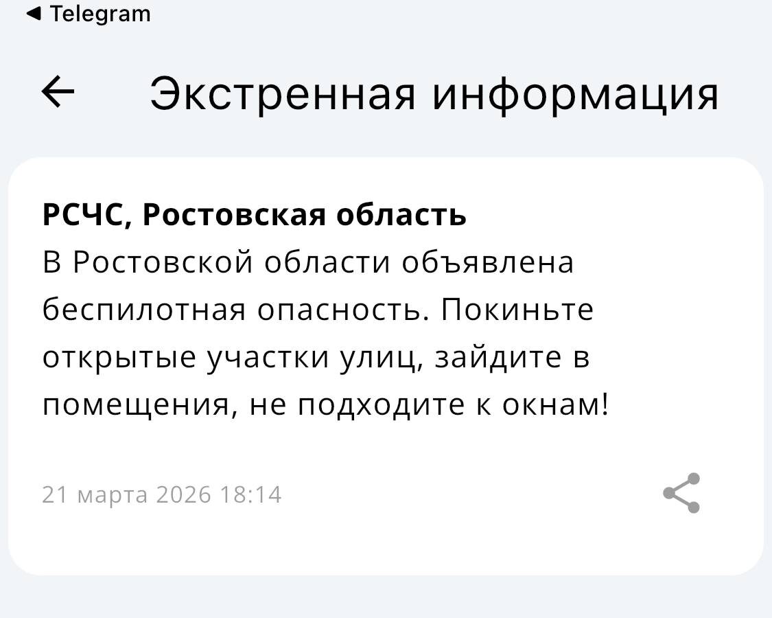 ❗️Вторую за день беспилотную опасность объявили в Ростовской области