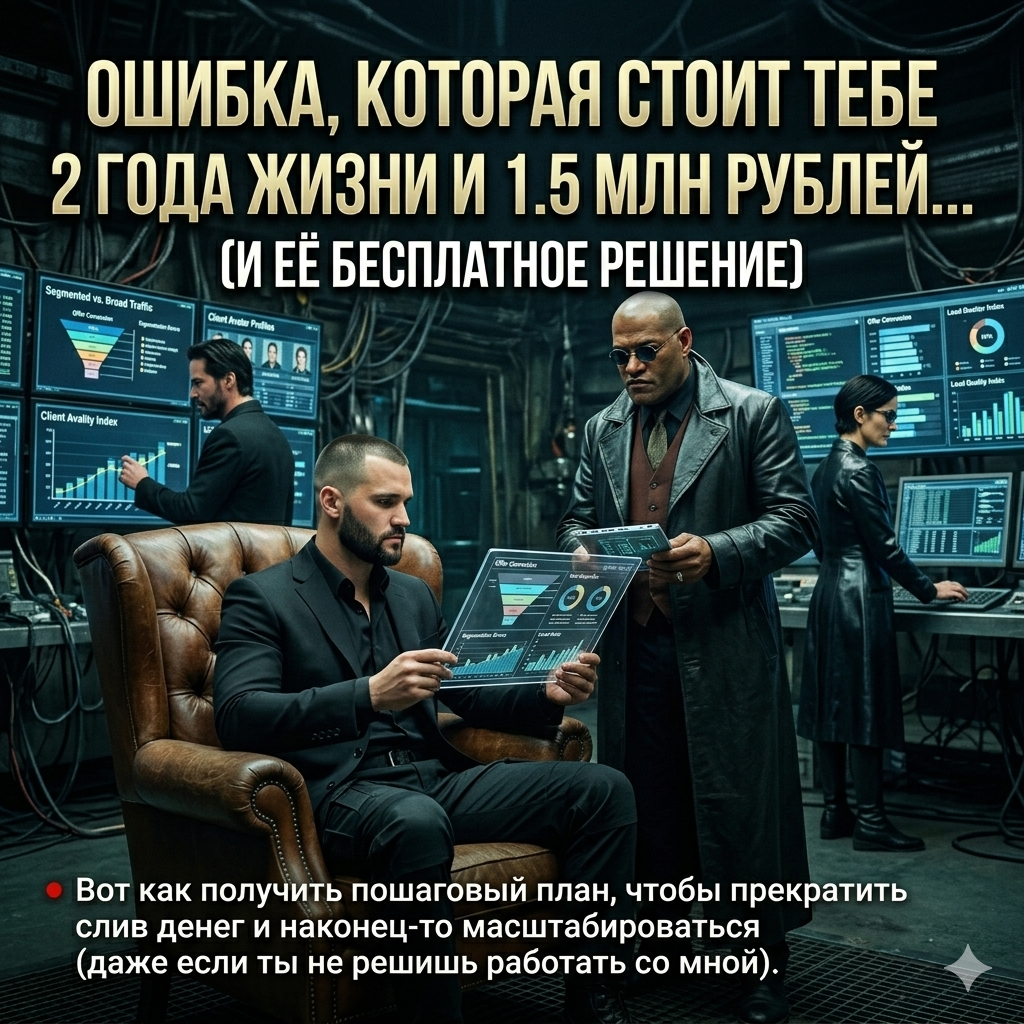 Сергей запустил по новой. Лиды подорожали (с 800 до 1400 руб), но стали целевые. Конверсия 35%. ROI 480%.