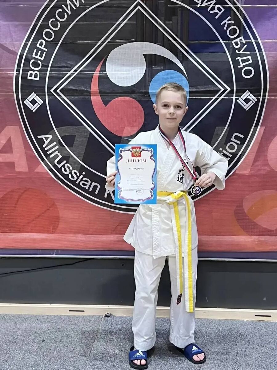 Сегодня ученик 4 «А» класса Егор принял участие в соревнованиях, в открытом кубке Всероссийской федерации кобудо, которые прошли в городе