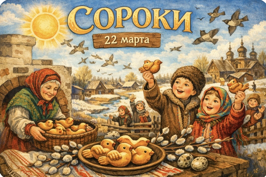 22 марта в народном календаре — один из самых поэтичных и светлых дней весны. Этот праздник известен под названиями Сороки , Жаворонки , а в церковной традиции он связан с памятью Сорока Севастийских мучеников — Сорок Севастийских мучеников.
