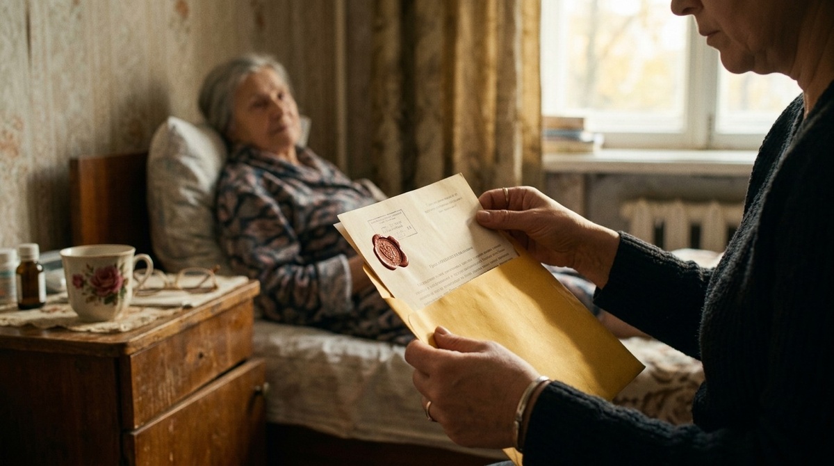 Надежда Ивановна медленно, с усилием, полезла под подушку и достала жёлтый конверт. Обычный, шершавый, заклеенный. На нём кривыми, неровными буквами: «Марине».