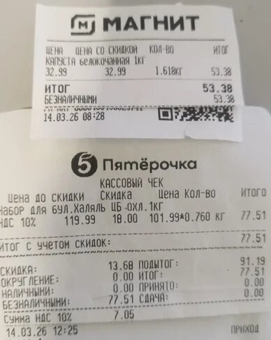На капусту 1,623 кг потратил 53,38 рублей, остальное идёт в банк.