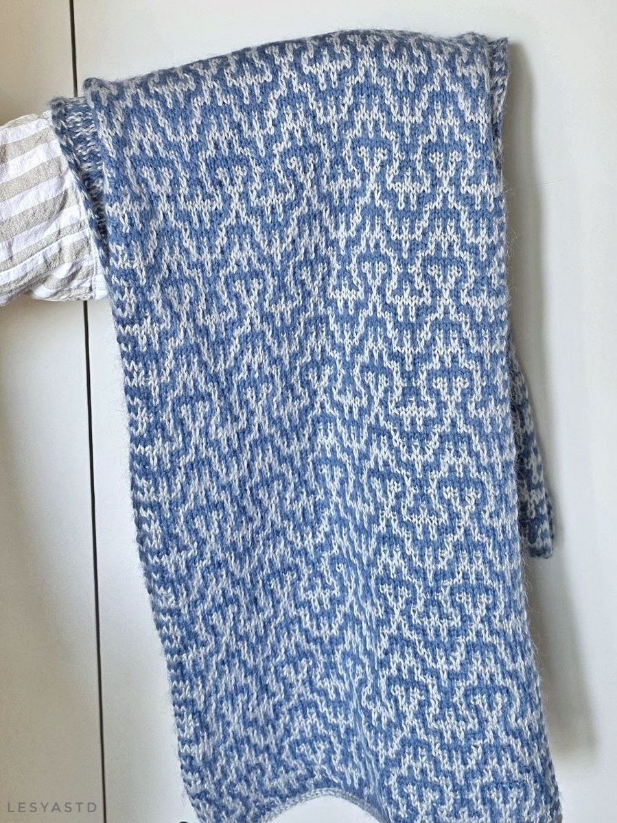 Всем привет! ✨Я это сделала! Довязала последние ряды шарфа ленивым жаккардом (схема в постах выше