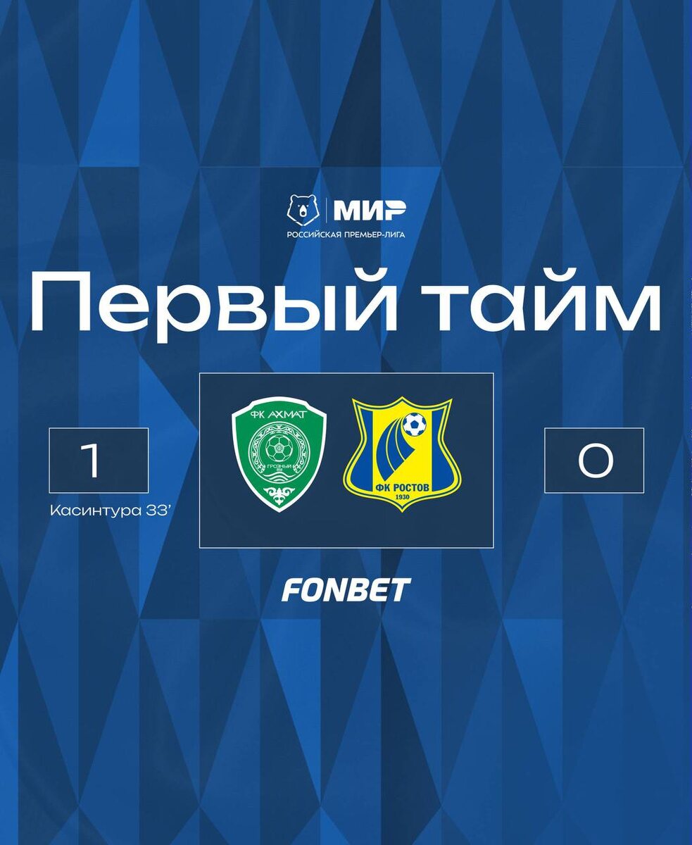 Первый тайм закончился со счетом 1:0 в пользу «Ахмата»