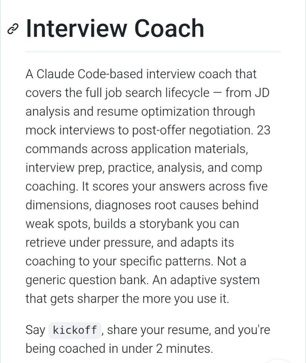 Что он может: • Исследовать вакансии и адаптировать резюме под конкретную позицию. • Проводить тренировочные собеседования и анализировать ошибки в виде списка, предлагая упражнения для улучшения слабых мест. • Подсказывать, как убедить работодателя повысить зарплату. • Обучен на реальных сценариях. • Может анализировать расшифровки ваших звонков. Попробуйте бесплатно — здесь. NeuroFlux #ИИ #поискработы #подготовкаксобеседованию #технологии #резюме #собеседование #карьера #инновации #работа #бесплатно