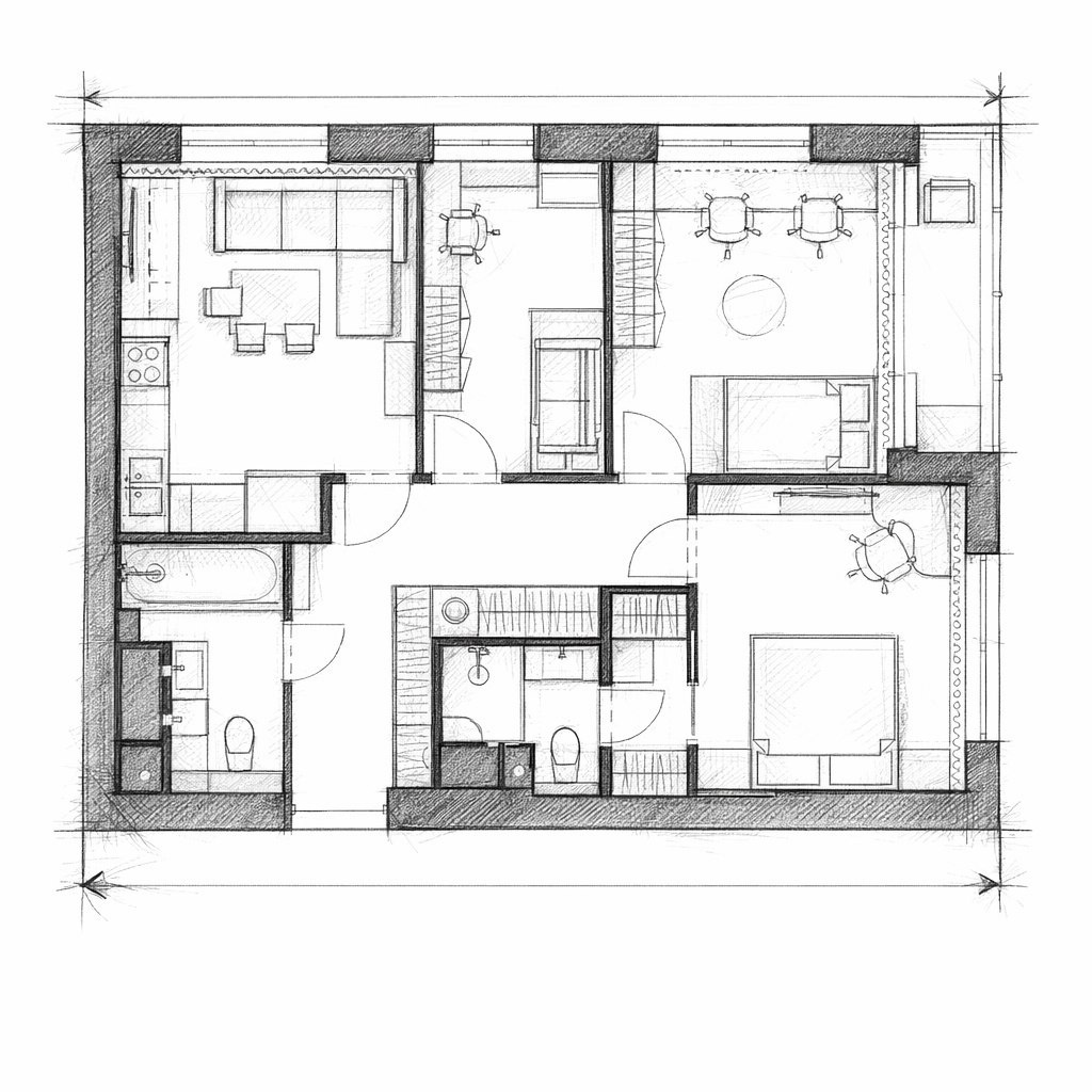 Разработка дизайн‑проекта — это сложный и многоступенчатый процесс, требующий профессионального подхода на каждом этапе. В этой статье мы подробно расскажем, как организована работа в нашей студии и что ждёт вас на пути от идеи до реализации интерьера мечты. * эстетически привлекательным; * функциональным и удобным для жизни; * технически осуществимым; * соответствующим всем строительным нормам и правилам. Разберём поэтапно, как мы достигаем этих целей. Это основа любого проекта, особенно для новостроек в бетоне. На этом этапе мы: * анализируем исходные данные помещения; * определяем оптимальное расположение стен и перегородок; * планируем расстановку мебели и оборудования; * учитываем все действующие строительные нормы и правила, чтобы вы без проблем согласовали планировку. Грамотно составленная планировка — залог комфортного пространства и успешной реализации проекта. Когда планировка утверждена, переходим к формированию образа будущего интерьера. Здесь мы определяем: * стилистическо